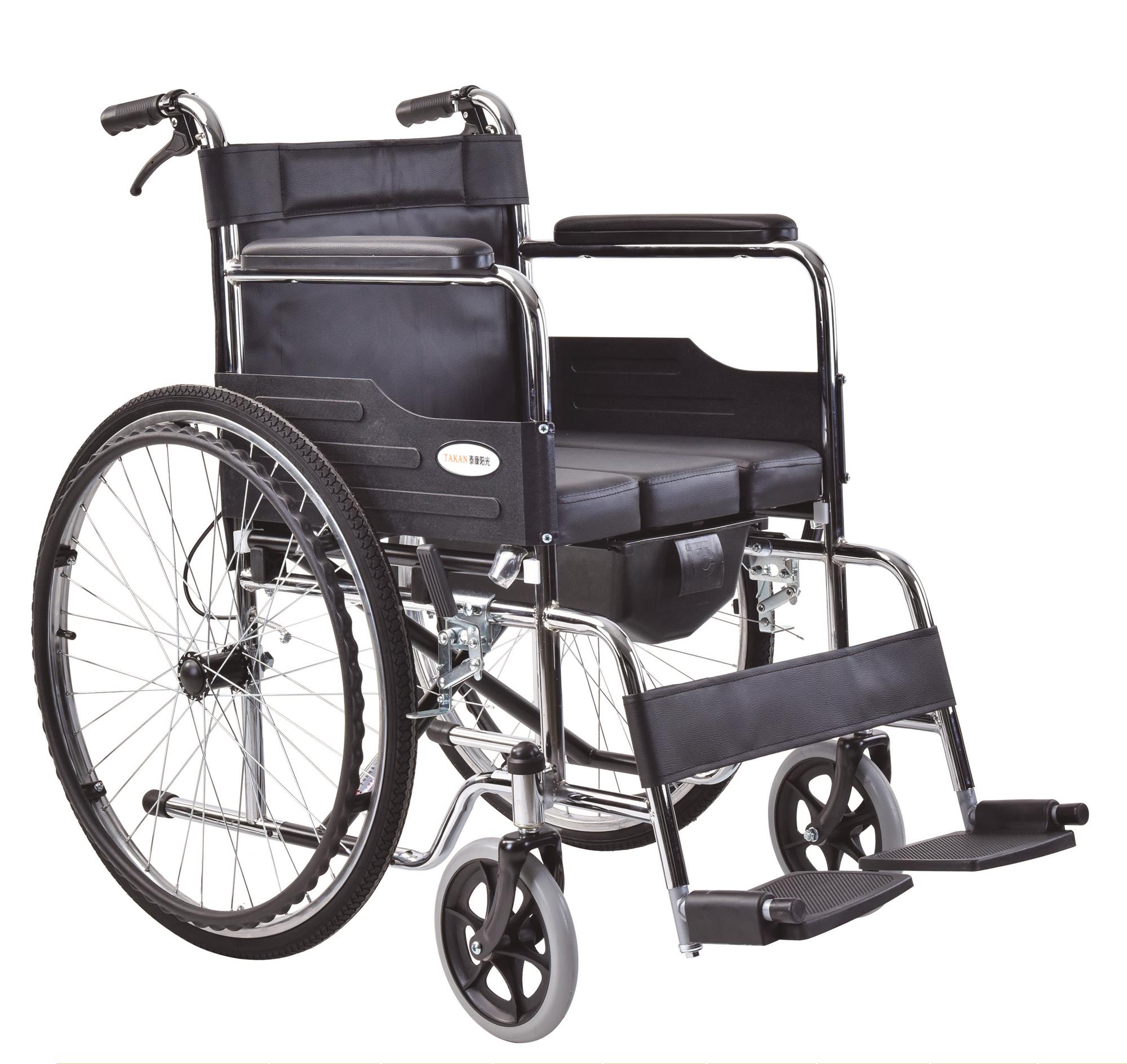 材 质:采用A3钢管材,银白色喷涂。 扶 手:固定扶手,PVC扶手垫。 座背垫:采用皮革面料。 护腿带:配置护腿带。 搁 脚:固定搁脚,踏板可上下调节。 前 轮:钢制前叉,8寸轴承PVC实心胎。 后 轮:24寸黑色充气式后轮,塑料防滑手扶圈。 刹 车:肘节式刹车装置。 载 重:100kg。
